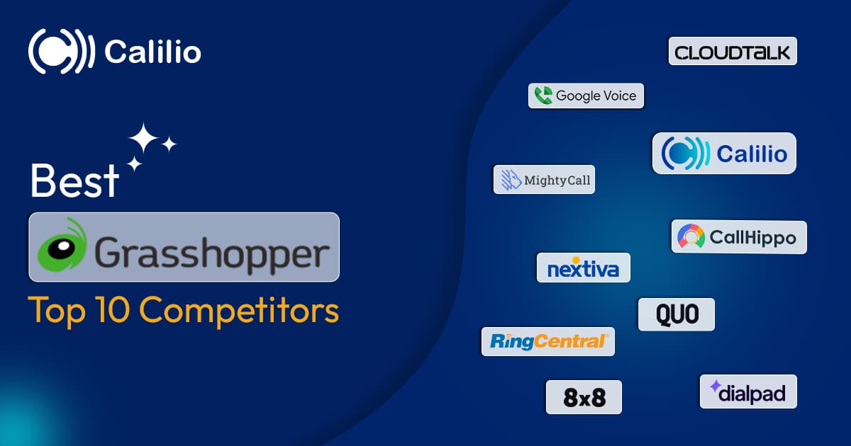 Grasshopper Competitors Pricing Key Features Calilio GoogleVoice Starter Plan ($10 monthly per user) Nextiva RingCentral CloudTalk 8×8 Dialpad OpenPhone Call Hippo MightyCall